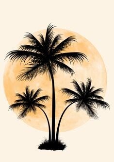 Palm trees silouette in front of the moon print.